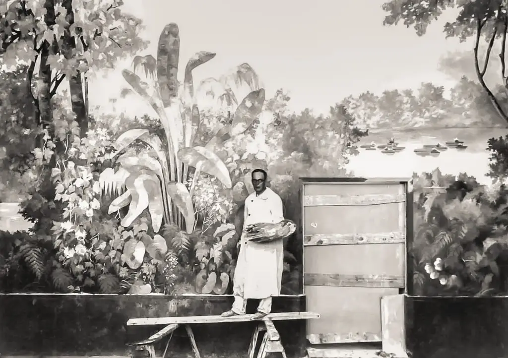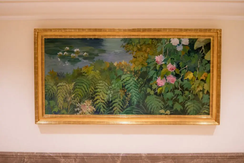 Se conservó una sección enmarcada del mural original de Weberg del Garden Room y está colgado en la pared en el sótano del templo.