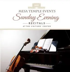 Please join us at the Visitors’ Center for our Nativity display and the Mesa Temple grounds for Christmas lights and displays. Our recitals will resume on January 4th with the Tyler and Linsey Maxson family! We look forward to seeing you again and thank you for supporting our wonderfully talented musical artists. Have a safe and joyous Thanksgiving and Christmas!