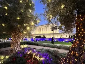 The Mesa Temple grounds host a couple of public events throughout the year, including the beloved tradition of the Easter musical presentation, “Jesus the Christ,” on the north lawn, which draws nearly 100,000 visitors annually during the two weeks before Easter, and breathtaking Christmas lights displayed during the holidays, which are turned on from the day after Thanksgiving though New Year’s Eve. Also during the holidays, the nearby Visitors’ Center hosts the International Nativity Exhibit of nativity displays handcrafted from around the world.